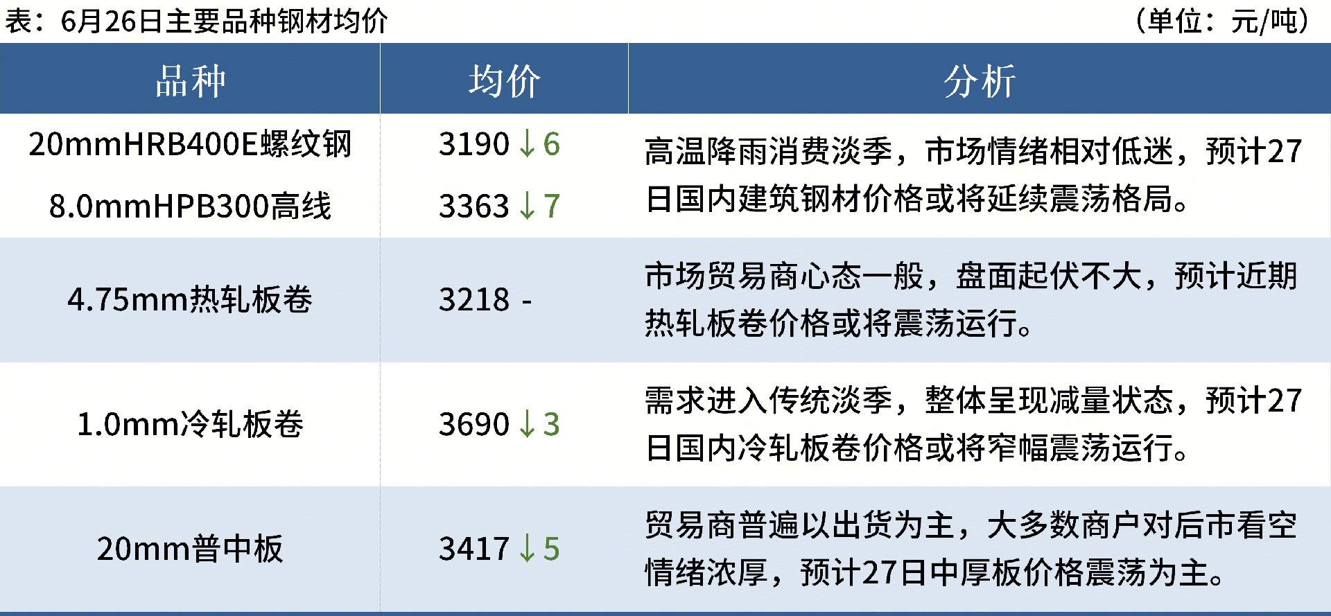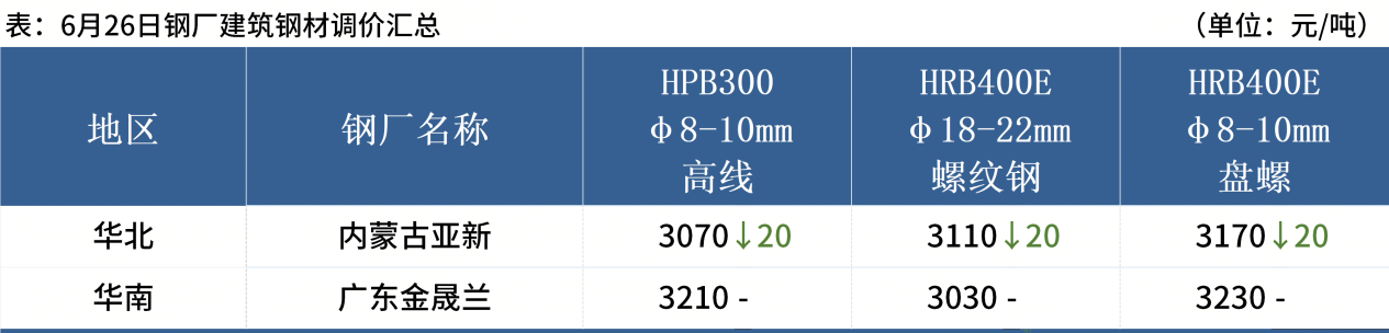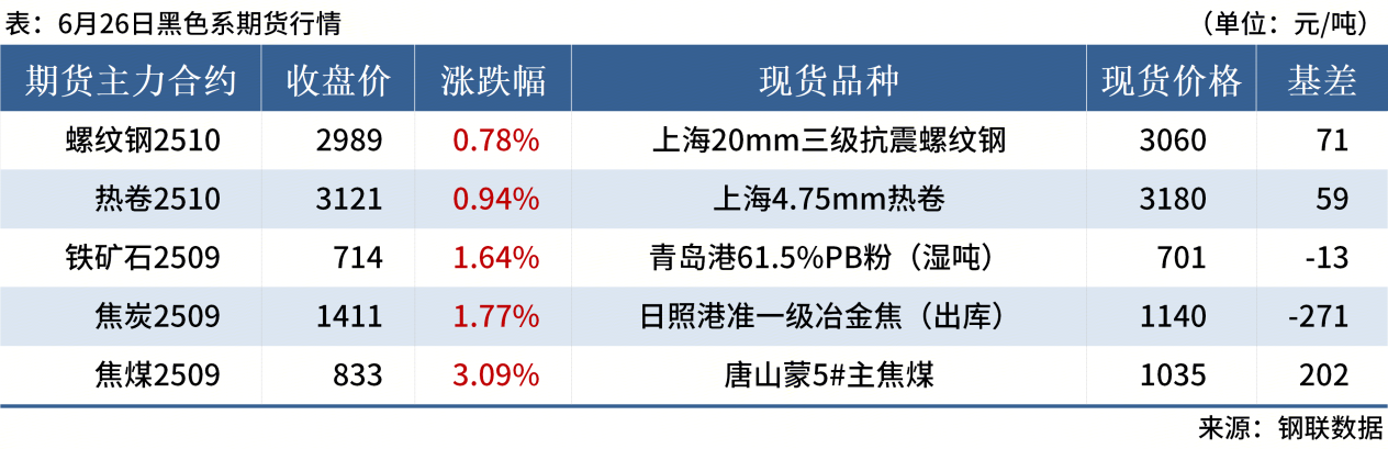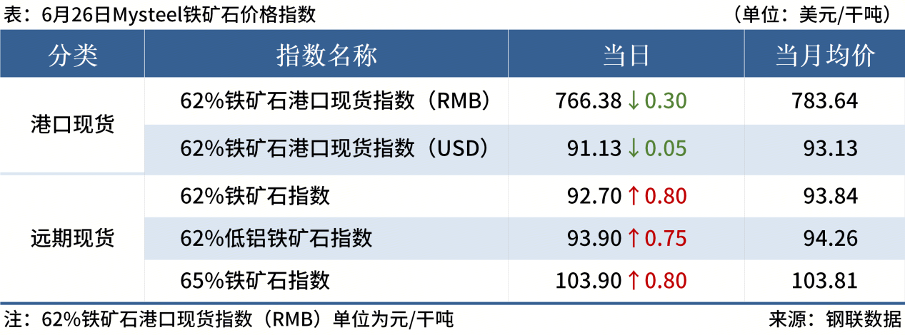 ◎ 6月26日,全國(guó)主港鐵礦石成交87.20萬(wàn)噸,環(huán)比減19%;237家主流貿(mào)易商建筑鋼材成交9.93萬(wàn)噸,環(huán)比增6.2%。