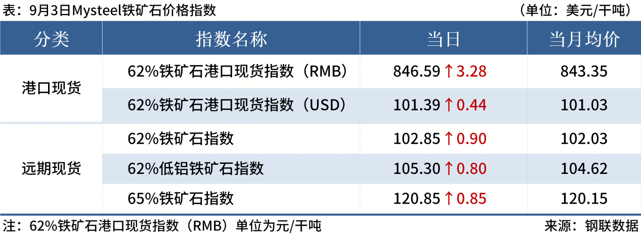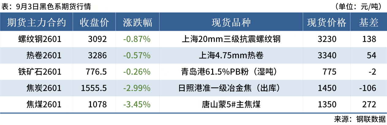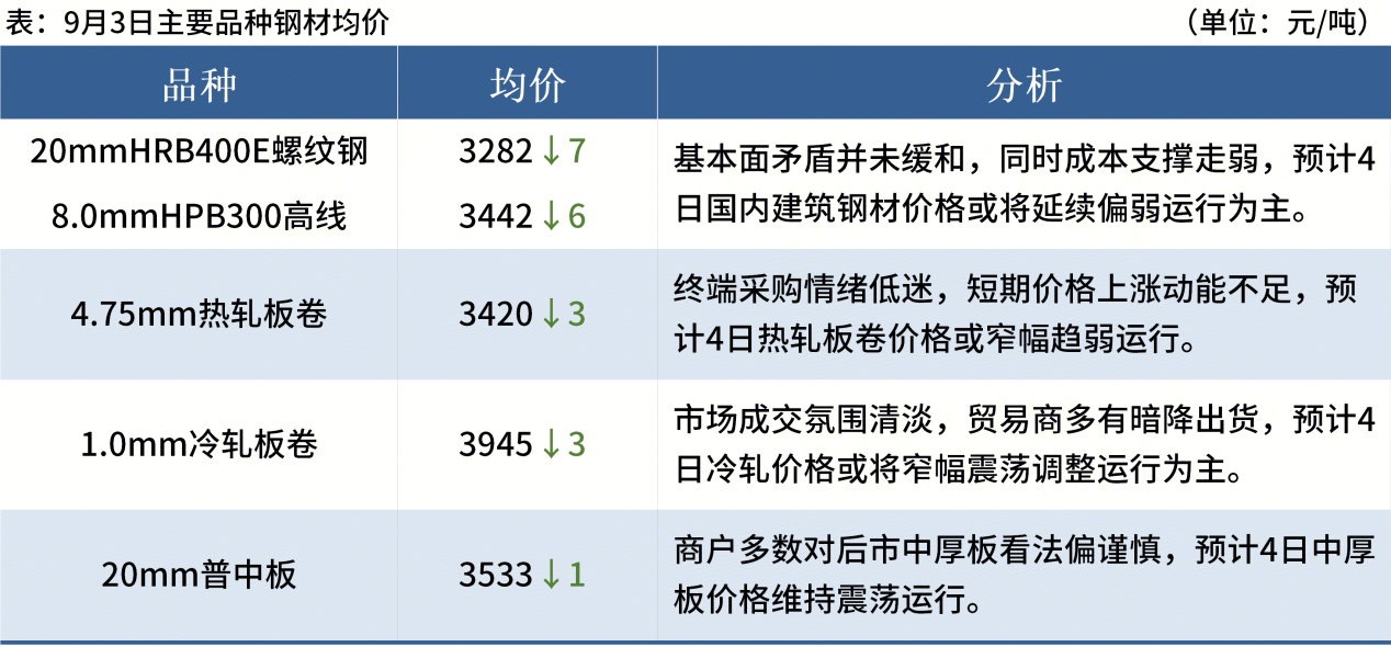 ◎ 9月3日,全國(guó)主港鐵礦石成交86.40萬(wàn)噸,環(huán)比減4%;237家主流貿(mào)易商建筑鋼材成交8.22萬(wàn)噸,環(huán)比減17%。