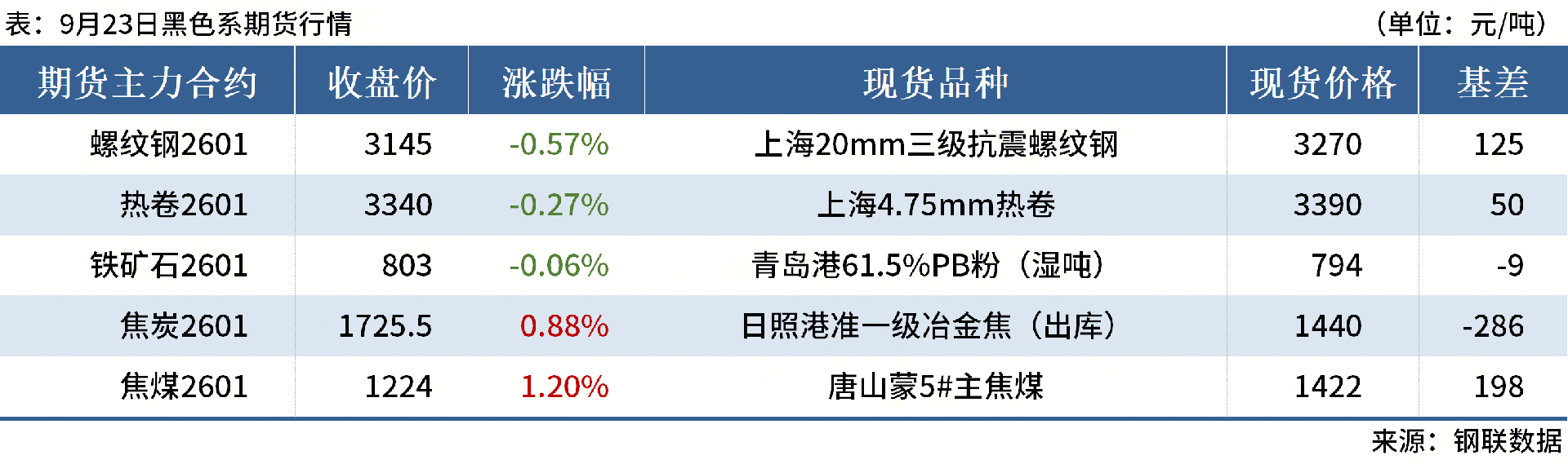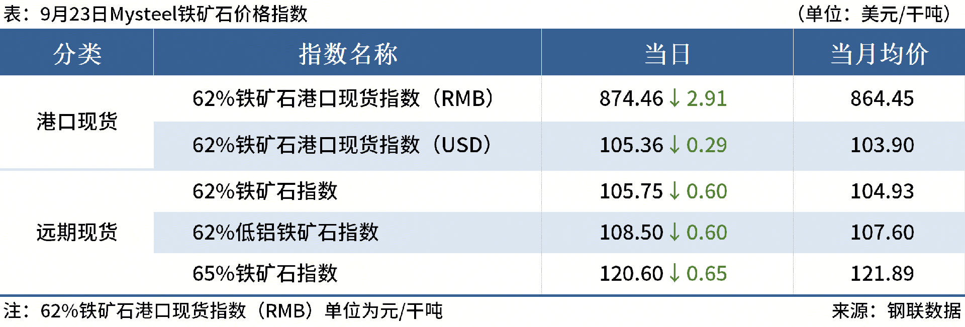◎9月23日,全國主港鐵礦石成交179.10萬噸,環(huán)比增65.5%;237家主流貿(mào)易商建筑鋼材成交9.20萬噸,環(huán)比減19.8%。
